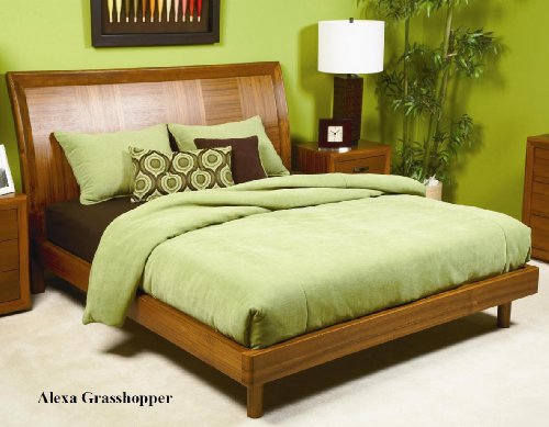 Alexa Grasshopper Duvet is a solid green in ultra soft low pile 100-Percent polyester chenille The set includes accent pillows with Chocolate brown accents Includes 94x98 duvet and insert 2 Queen Shams 30x20 1 16x16 decor pillow 1 26x14 decor pillow Machine Wash Reversible Duvet and Shams 6-Pi